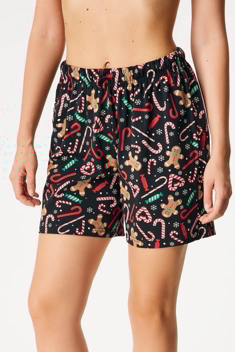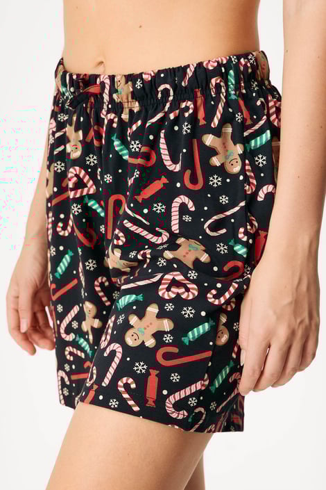 Krótkie damskie spodenki od piżamy Christmas z bożonarodzeniowym wzorem w pierniczki. Uszyte z miłej bawełny.
