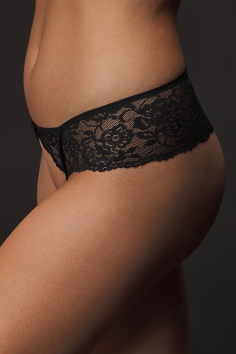 Kuszące stringi Karine z przepięknej wytłaczanej koronki odsłaniają krok dla partnerskich igraszek.