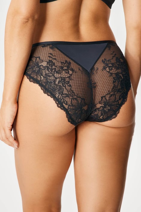 Klasyczne majtki Alexa to eleganckie połączenie koronki i miękkiej satyny. Pionowy szew w tylnej części ładnie zaokrągla pupę.