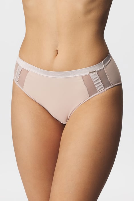 Klasyczne majtki Bridget z efektownymi tiulowymi wstawkami po bokach. Z gładkiej mikrofibry, która się do Ciebie dopasuje.