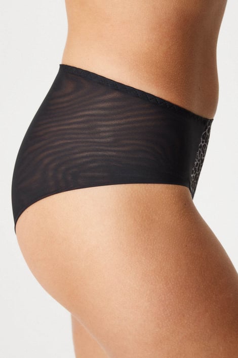 Klasyczne majtki Eleanor z lekkiego jak pajęczyna tiulu. Wysokie boki i pionowy szew z tyłu są korzystne dla kobiet o pełnych kształtach. Z przodu wzór w cętki.