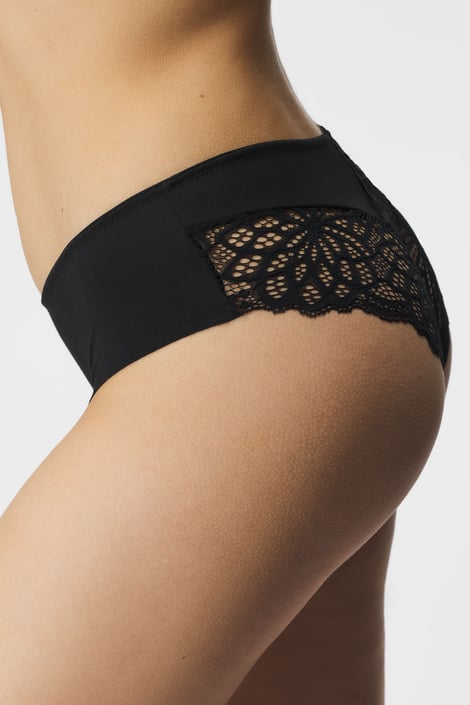 Bawełniane majtki Sarah z nogawkami wycinanymi laserowo. Pośladki okrywa koronka z bogatym wzorem.