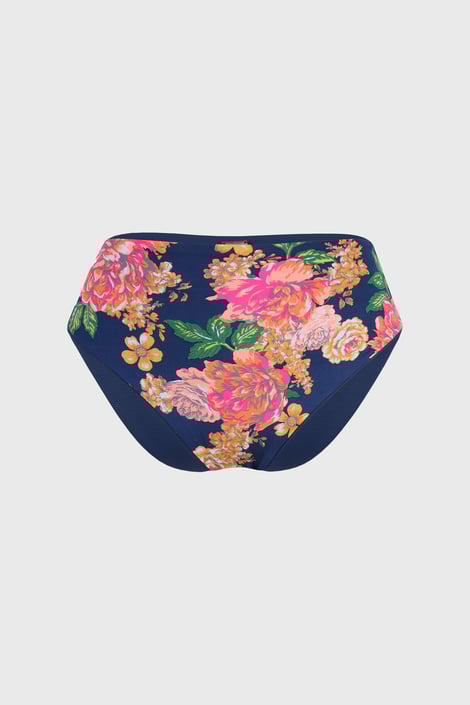 Majtki od kostiumu kąpielowego Maaji Indigo Blue Paradisus w dwustronnej wersji. Jeśli wolisz jednobarwną klasykę, wybierz niebieską stronę z materiału kąpielowego pika. Jeśli chcesz zrobić wrażenie, odwróć majtki na stronę z kolorowymn kwiatowym wzorem.