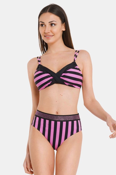 Majtki od kostiumu kąpielowego Mambo Italiano ze wzorem w wyraziste paski i aplikacją z dżetów. Wygodny wyższy krój!