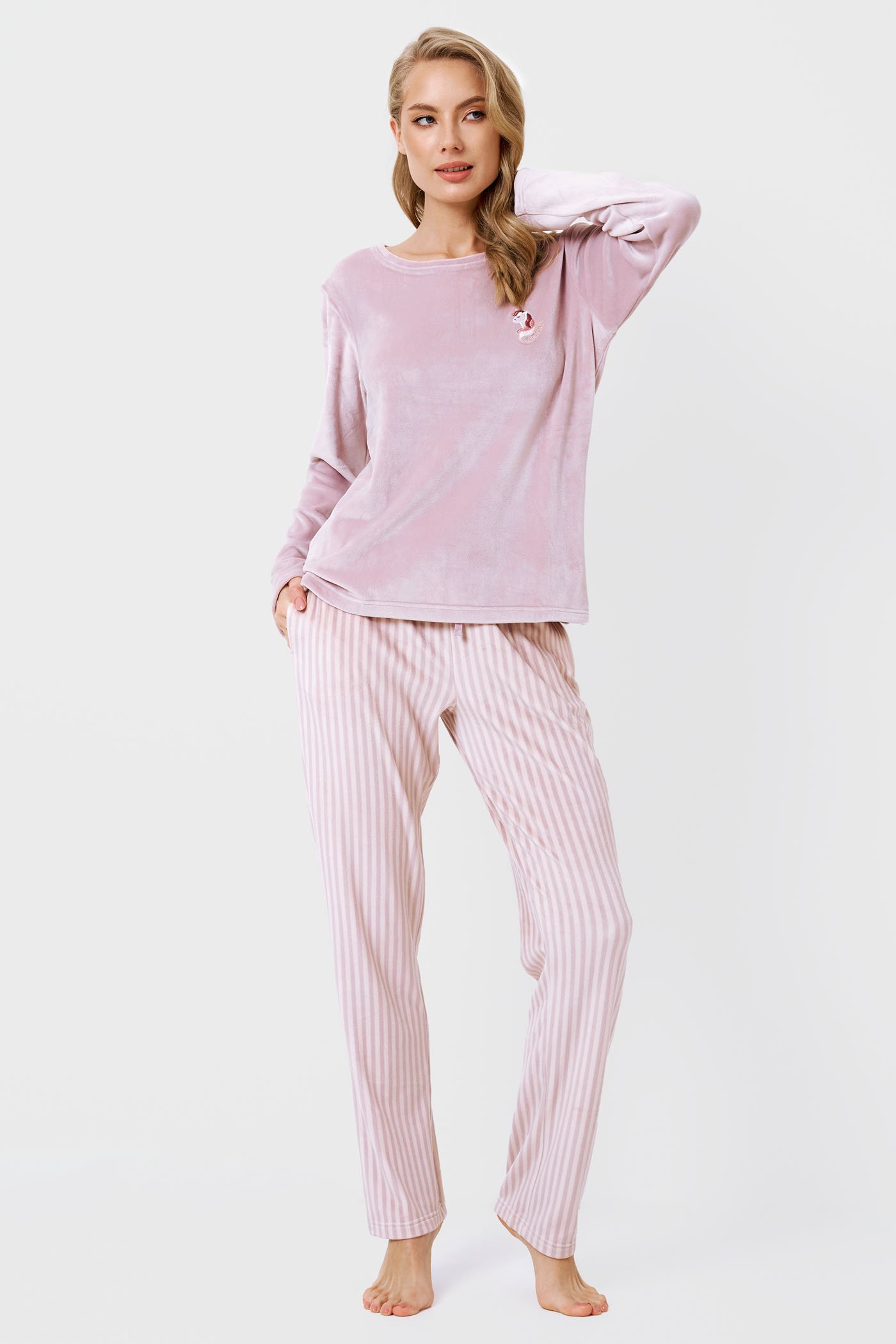 Damska piżama Lunna zapewni Ci ciepło nawet w najchłodniejsze noce. Koszulka w stylu bluzy i długie spodnie są uszyte z mięciutkiego materiału, który jest miły w dotyku i cudownie ogrzewa.