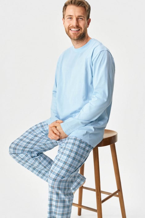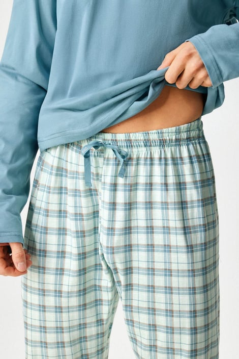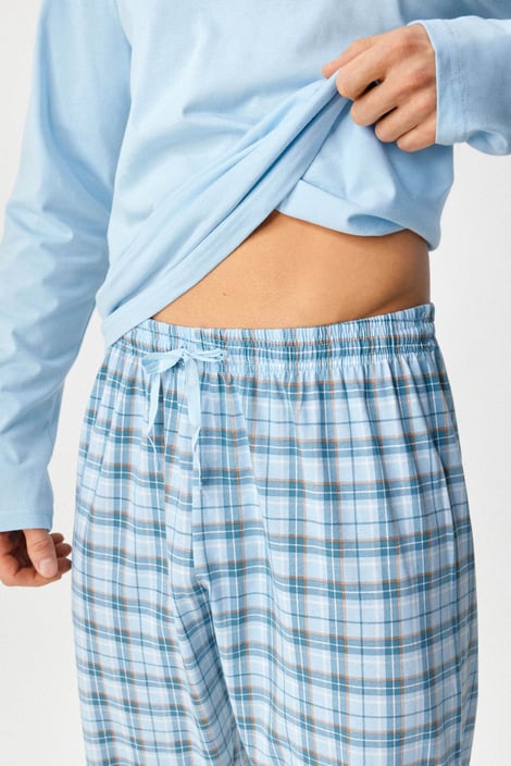 Bawełniana piżama Brendan z długimi rękawami i nogawkami zapewni Ci słodkie sny. Jednobarwna koszulka w komplecie ze spodniami w kratkę. W pasie przeszywana guma i sznurek do jego regulacji.