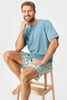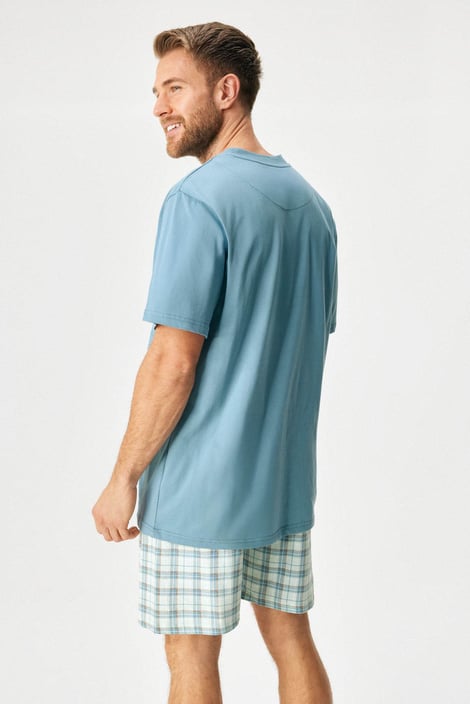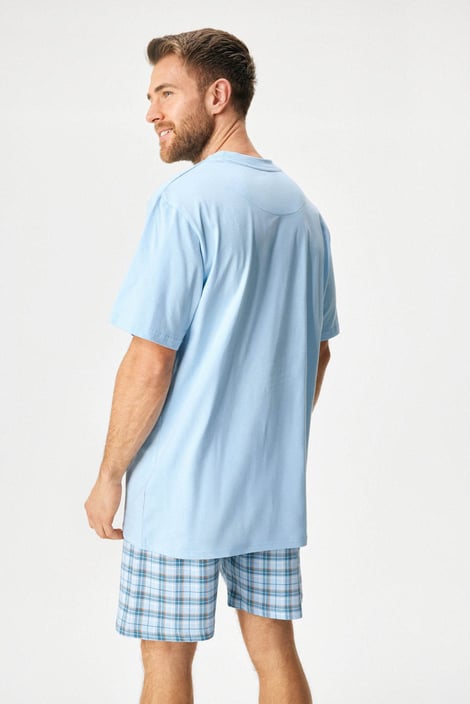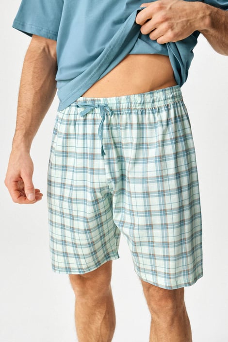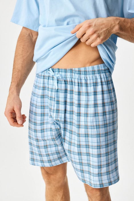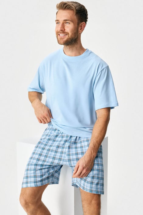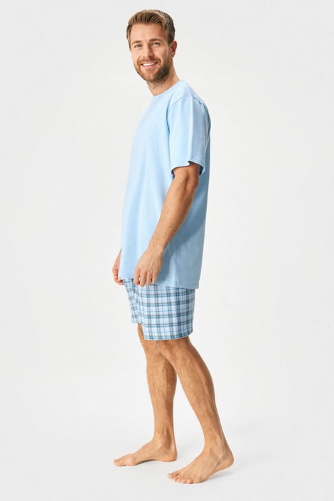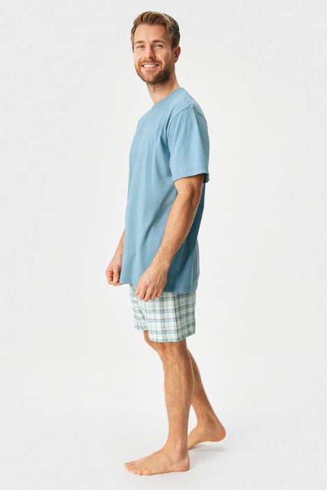 Bawełniana piżama Brendan z miękkiej dzianiny zapewni Ci słodkie sny. Jednobarwna koszulka z krótkim rękawem w komplecie z krótkimi spodenkami w kratkę. W pasie przeszywana guma i sznurek do jego regulacji.