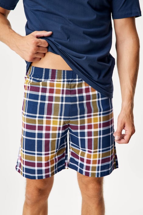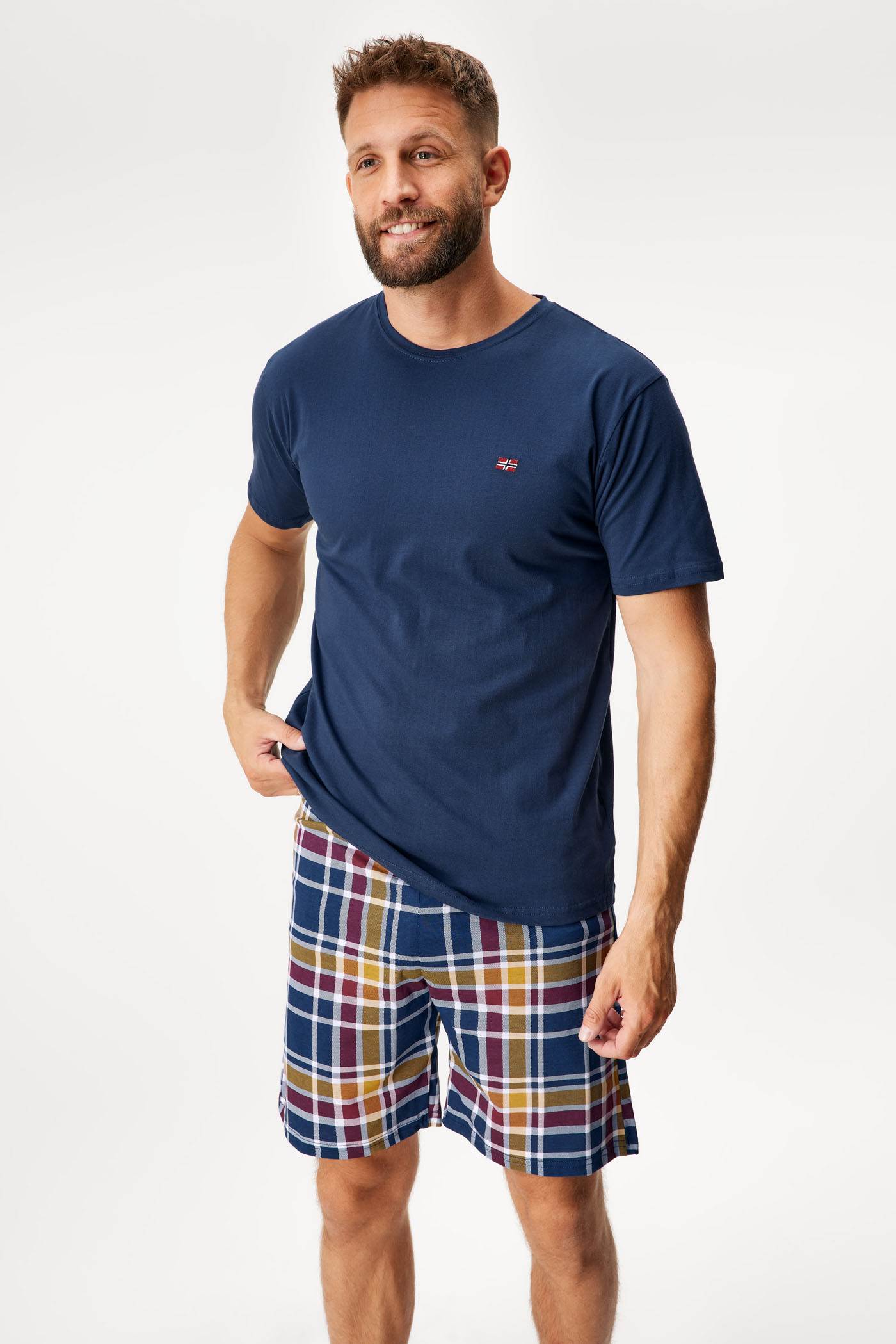 Piżama męska Flag ze 100% bawełny, która zapewni Ci niczym niezakłócony komfort. T-shirt z subtelnym haftem uzupełniają szorty w kratkę.