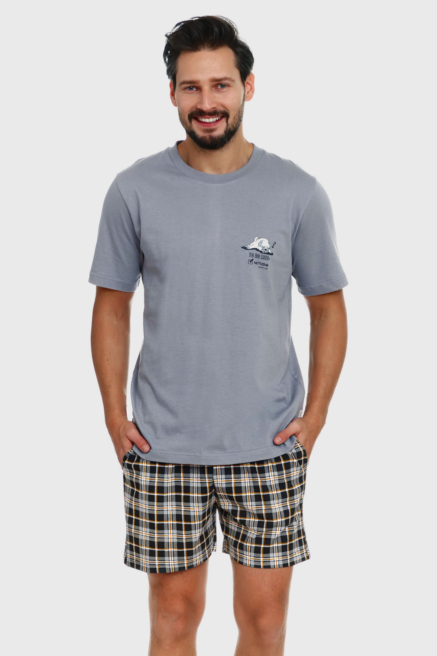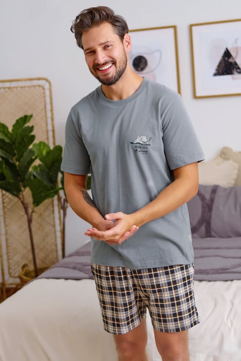 Piżama Sleep z drobnym nadrukiem na T-shircie i spodenkami w kratkę. Miękka dzianina ze 100% bawełny zadba o Twój komfort przez cały dzień.