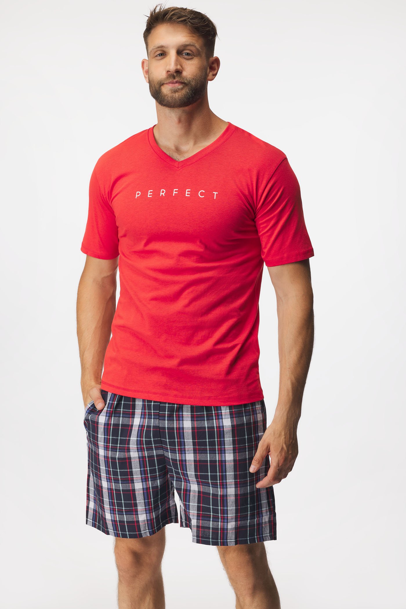 Męska piżama Sun z czystej bawełny. T-shirt uzupełniają luźne spodenki z miękkiej tkaniny.