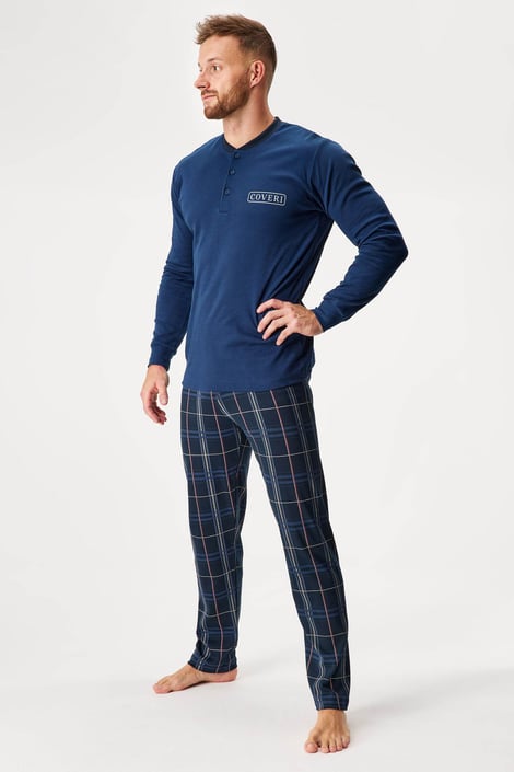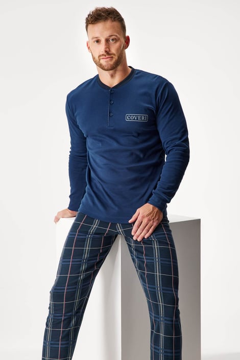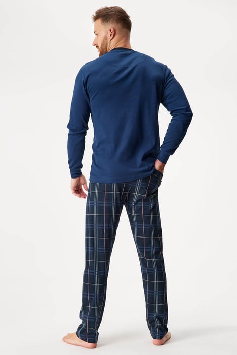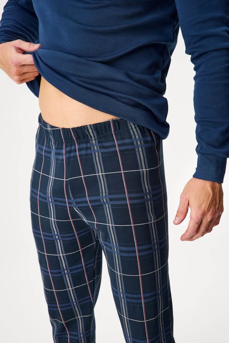 Piżama męska Tomasso ze 100% bawełny zapewnia niczym niezakłócony komfort w nocy. Koszulkę z długim rękawem zdobi subtelny nadruk, a spodnie na całej powierzchni mają popularny wzór w kratkę.