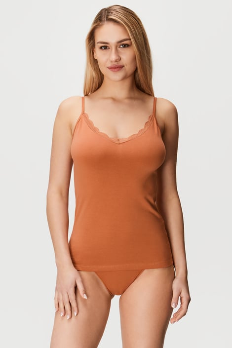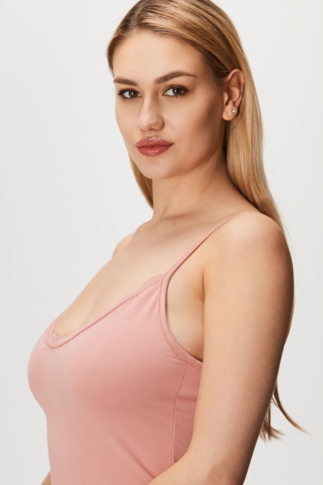 Zapewnij swoim plecom komfort termiczny w podkoszulku Ángelita z elastycznej dzianiny bawełnianej. Podkoszulek przylega do ciała i ładnie się do niego dopasowuje. Dekolt podkreślona delikatna koronka.
