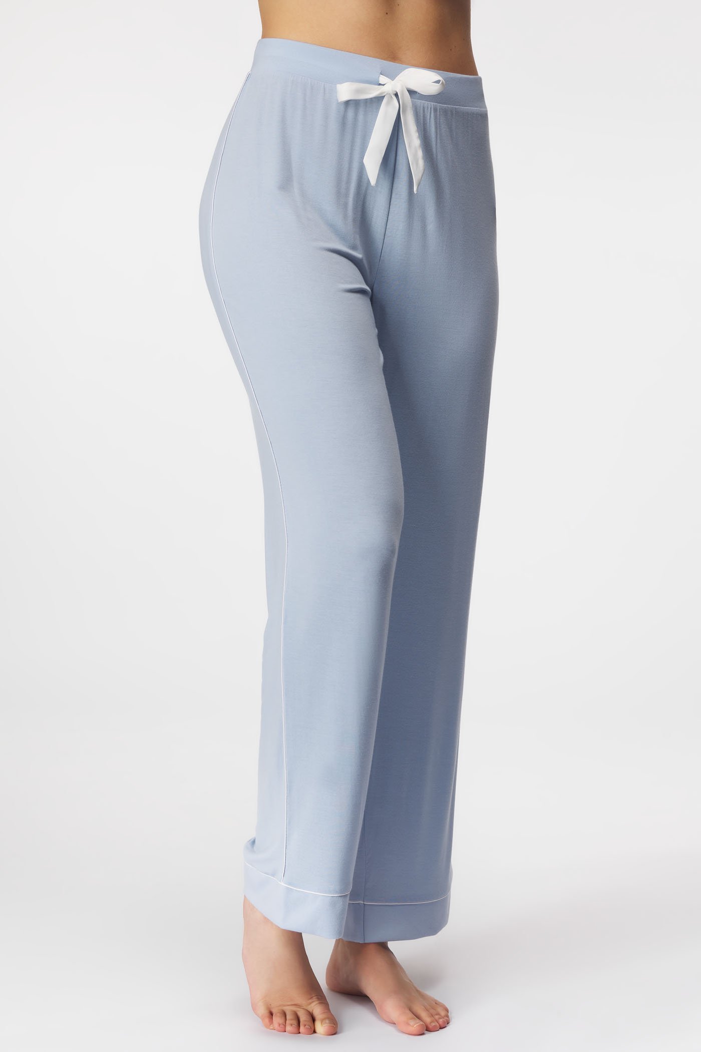 Spodnie od piżamy Essential Hydrangea są wyjątkowo komfortowe. Mięciutka bawełna swobodnie spływa po ciele i przyjemnie chłodzi. Nogawki zdobi subtelna tasiemka.