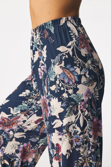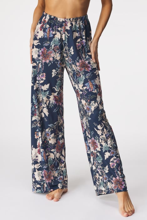 Spodnie od piżamy Ewona z szerokimi nogawkami z lejącej gładkiej dzianiny. Bardzo wygodne i eleganckie