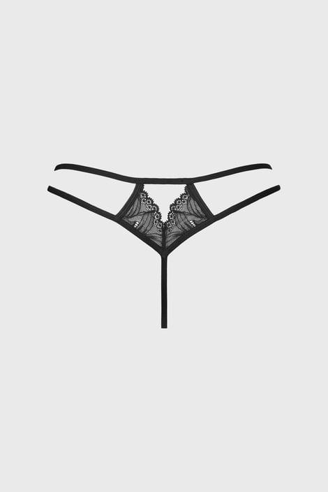 Kuszące stringi Lulu z koronki i miękkiej siateczki. Z nietypowo zaprojektowanym krokiem.