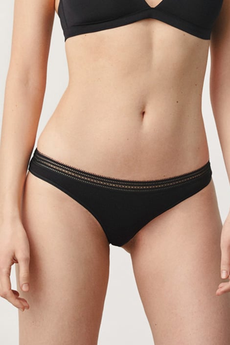 Bawełniane stringi Rosa Cuarzo z ozdobnym pasem. Pionowy szew ładnie zaokrągla pośladki.
