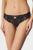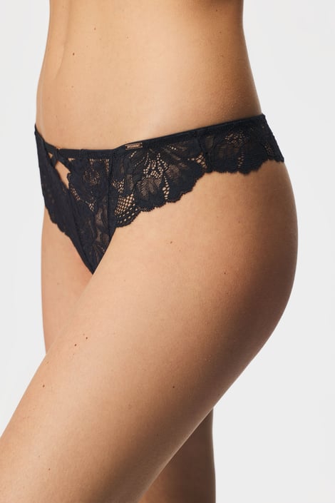 Stringi Sedan z mięciutkiej koronki. Z przodu wyróżniają się błyszczące satynowe paski.