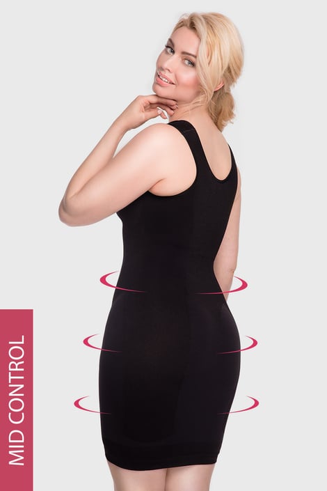 Bezszwowa sukienka wyszczuplająca Hanna na szerokich ramiączkach. Uszyta z elastycznej mikrofibry o właściwościach antybakteryjnych i z aktywnymi jonami srebra. Model ten pomoże Ci osiągnąć wymarzoną sylwetkę.