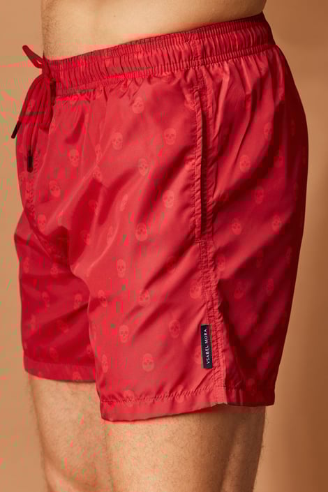 Szorty kąpielowe Fire z szybkoschnącego, lekkiego materiału z nadrukiem czaszek w tej samej tonacji kolorystycznej. Wygodny krój do pływania i sportów plażowych.