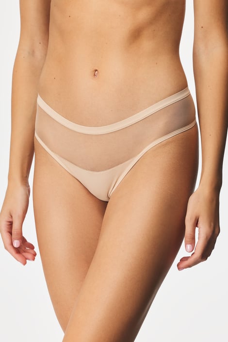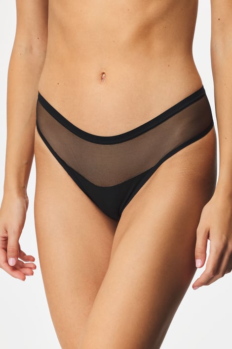 Tanga Anastazia z miękkiej bawełny i prześwitującego tiulu. Luźny krój majtek będzie Ci pasował.