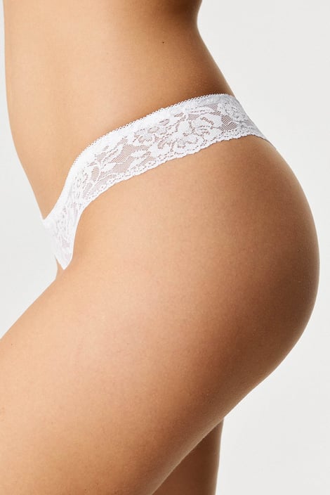 Lekkie i wygodne tanga Estee dobre do noszenia na co dzień i na zmysłowe wieczory. Krok tworzy delikatna siateczka podszyta miękką bawełną, a talię zdobi koronka w kwiaty.